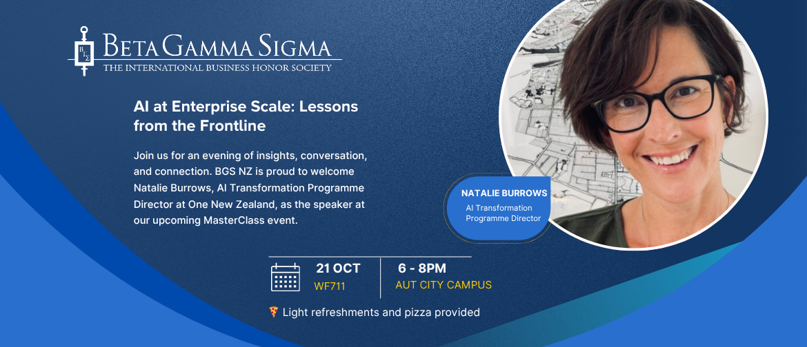Beta Gamma Sigma New Zealand is proud to welcome Natalie Burrows, AI Transformation Programme Director at One New Zealand, as the speaker at our upcoming MasterClass event.